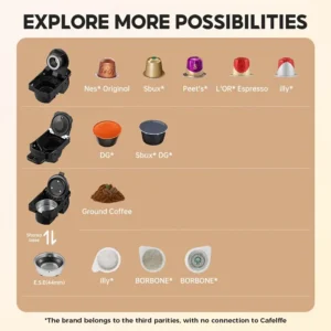 5.00 out of 5£59Original price was: £59.£5.99Current price is: £5.99.CAFELFFE 4 In 1 Capsule Coffee Maker MK603, Hot/Cold Brew Espresso Machine, 19Bar, Suitable For Nec* Capsules, DG* Capsules, ESE And Coffee Powder, Easy To Clean, Rust-proof, 0.6L Removable Water Tank, Suitable For Home Kitchen And Gift Giving