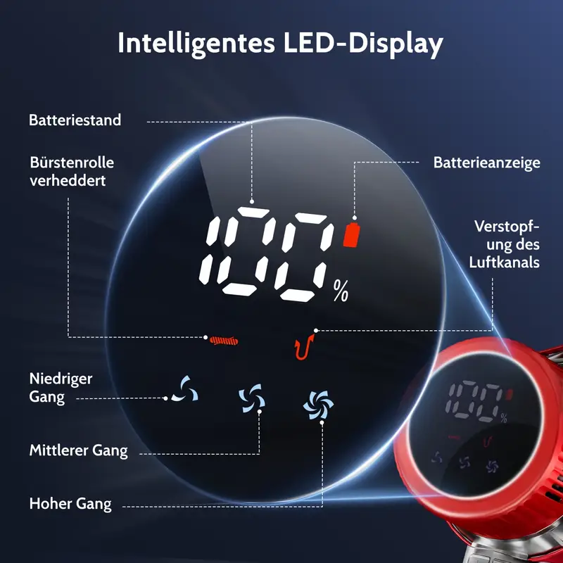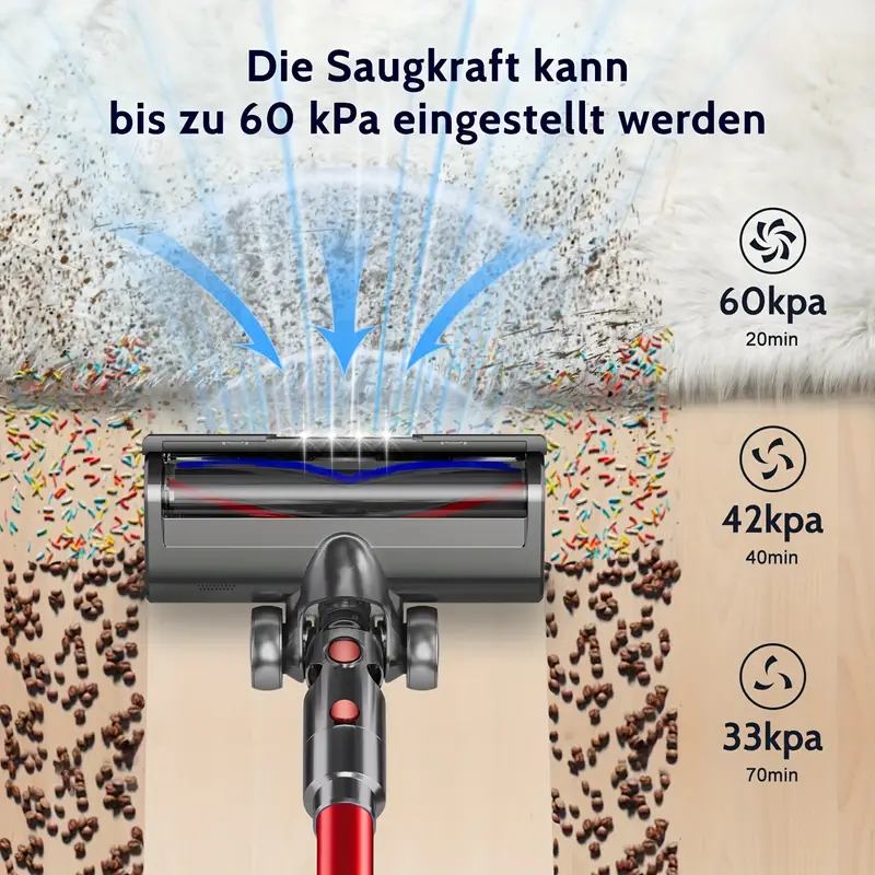 Airchros Akku Staubsauger 60000Pa/50Min, Cordless Vacuum Cleaner with Smart Display And Charging Station, Lightweight Anti-Tangle Vacuum Cleaner, Super Quiet Cordless Vacuum Cleaner for Hard Floors Carpets Pet Hair