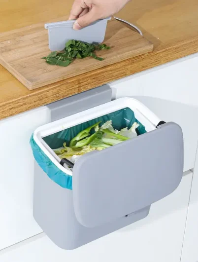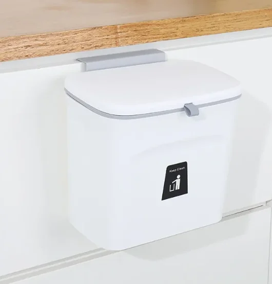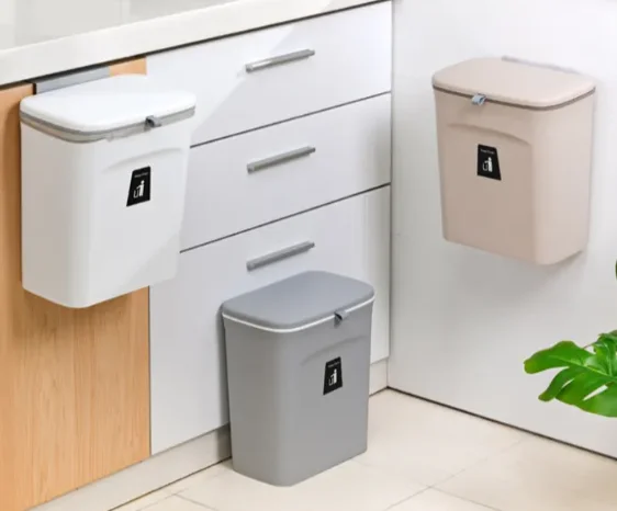 - 【EASY & FLEXIBLE INSTALLATION】 PILITO hanging trash bin comprises a plastic pasting board for the hook-up design adopted on the back of the bin. It can be hung on the cabinet door/under the sink, on the wall using the pasting board, or directly put on the counter top or the ground.