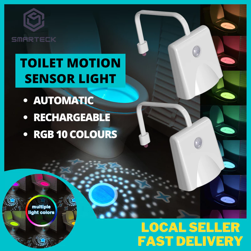 SMARTECK Toilet Night Light Motion Sensor RGB 10 Colors USB Rechargeable Waterproof Toilet Bowl Seat
