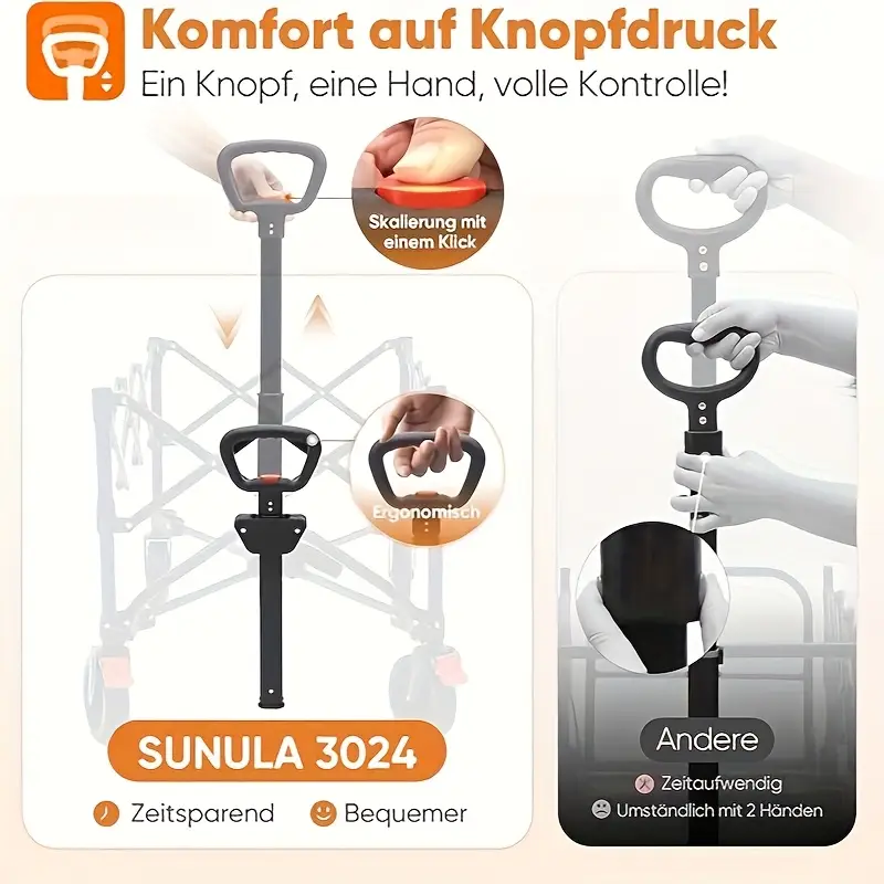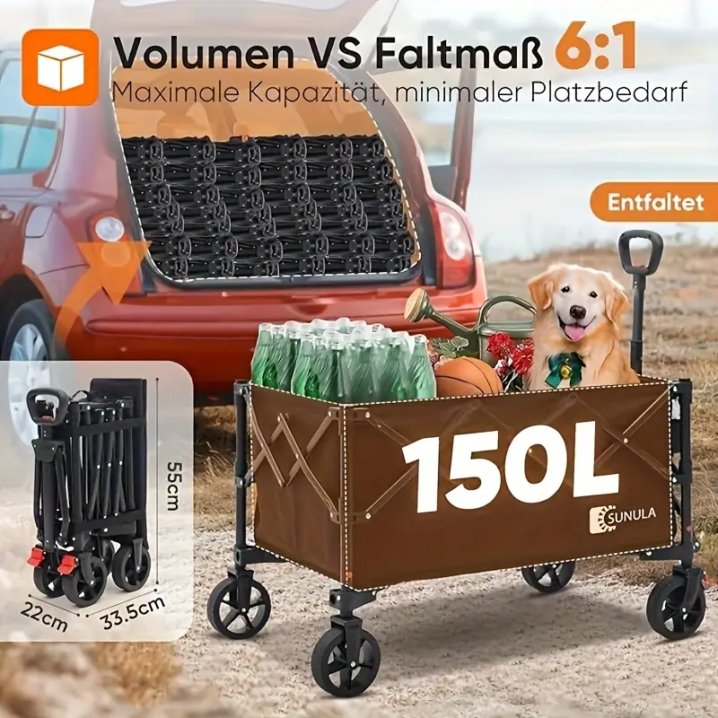 Sunula Collapsible Wagon Cart, Supports Up to 149.69 KG with A 300L Capacity, Oversized All-terrain Wheels for Sand, Grass & Gravel, Perfect for Shopping, Camping, Gardening, Beach Trips, And Outdoor Activities. Folds Compactly for Easy Storage.